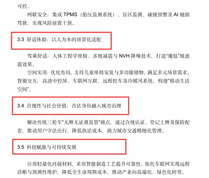 合法身份与社会价值:通过合规认证、登记上牌及保险配套,解决传统三轮车“无牌无证难监管”痛点,推动用户守法出行,助力城市交通精细化管理。