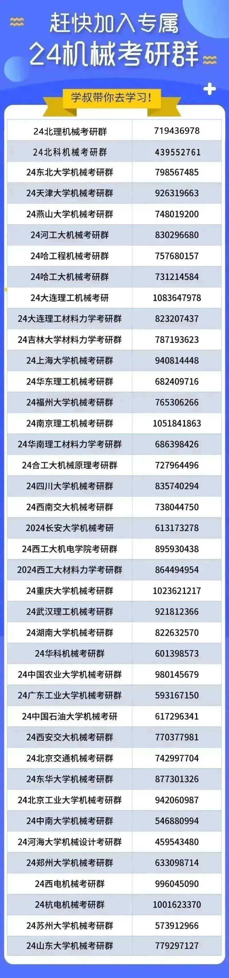 24机械考研各院校学习交流群现已开通,赶快加入获取更多院校信息吧!