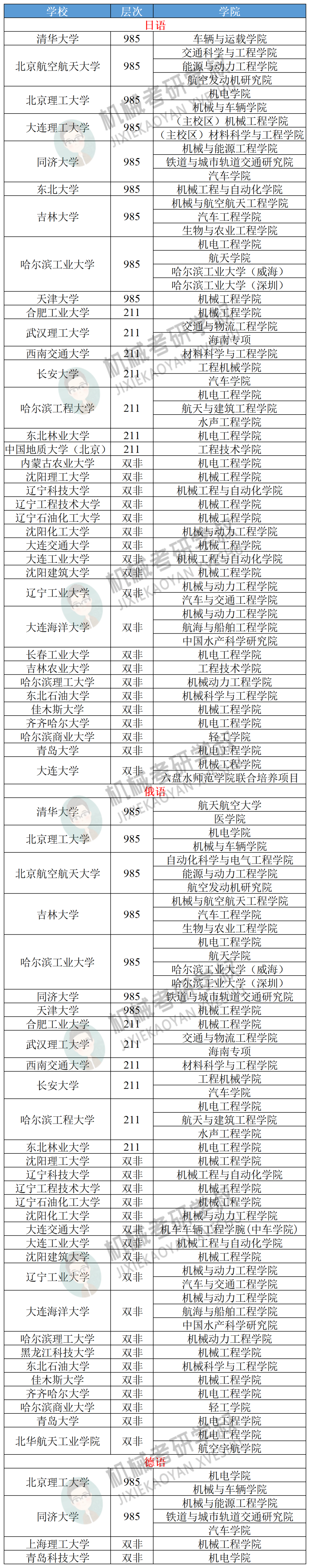 有些不擅长英语,但是擅长其他小语种(俄语、日语、德语等)的同学想知道,机械考研的众多院校中初试有哪些可选英语外的其他小语种,学叔应大家要求,整理了院校名单供大家参考!