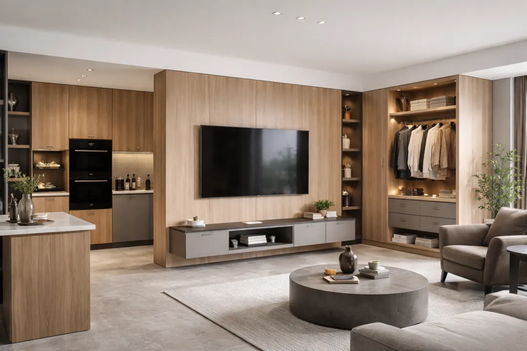 - 表面性能与空间场景的协同。饰面板不只是“能做柜子”,还需要适配儿童房、厨房、书房、商用空间和旧改项目等不同场景。