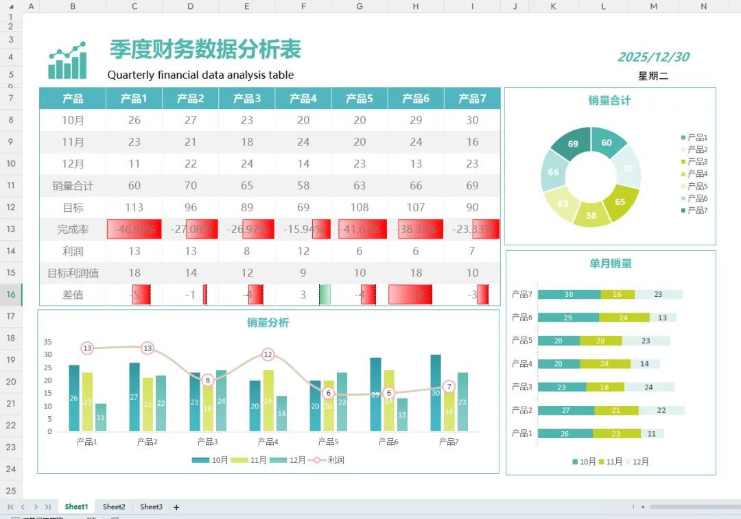季度财务报表分析模板(带公式)