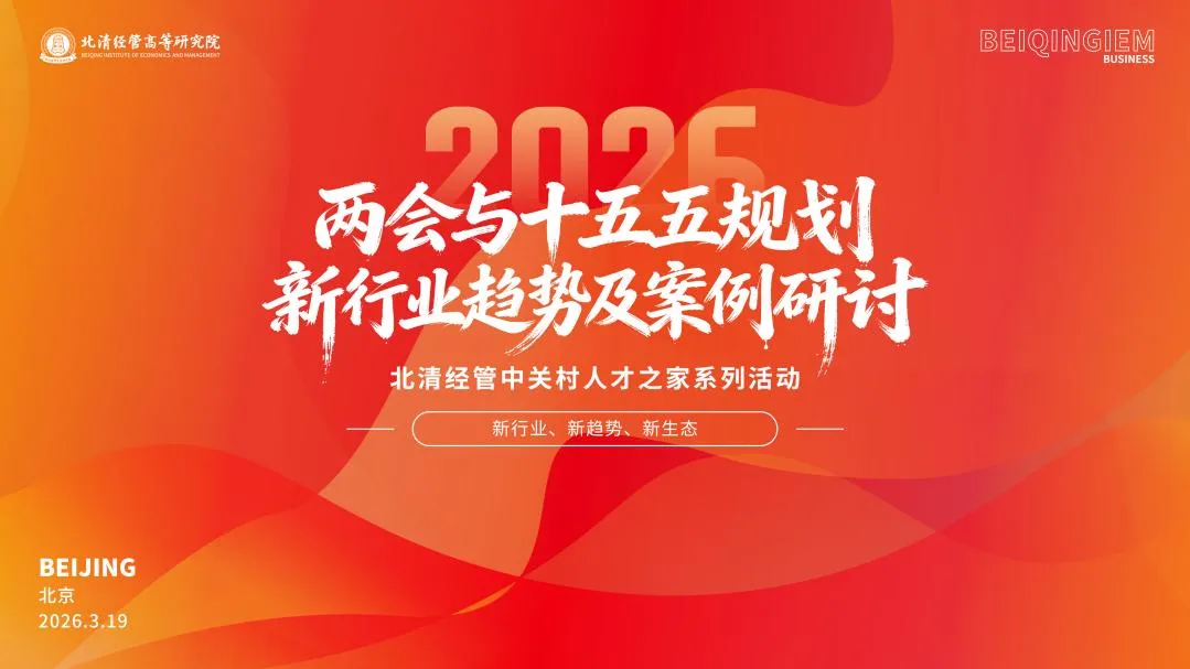 春启新程,智启未来。在2026年两会圆满落幕、“十五五”规划正式开局的关键节点,由北清经管高等研究院中关村人才之家主办的《2026两会与“十五五”规划新行业趋势及案例研讨会》闭门沙龙,在北清经管高等研究院圆满落幕!