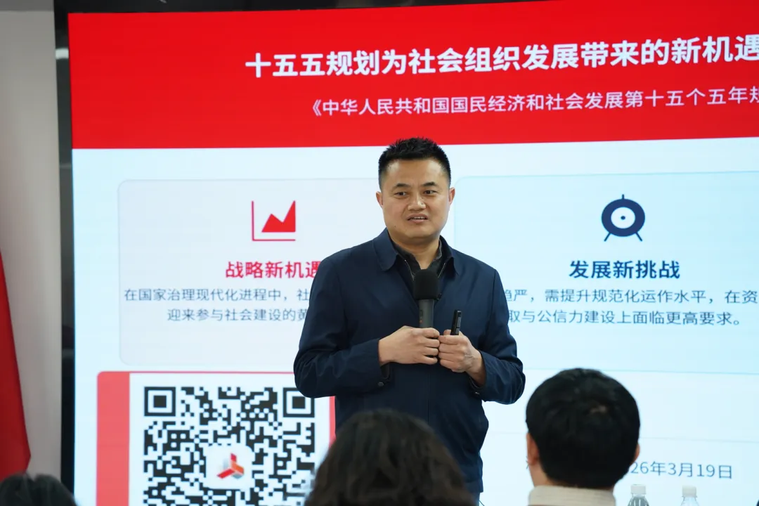 中关村人才协会冷明秘书长作为开场嘉宾,围绕2026两会精神,从社会组织视角,深度解读了“十五五”规划给社会组织带来的新要求、新机遇。他提到,“十五五”规划将社会组织作为完善共建共治共享社会治理制度的重要力量,明确其在基层治理、公共服务、行业治理中的核心作用,同时也强调了党建引领、合规运营的重要性,为企业联动社会组织、把握政策红利提供了清晰指引。