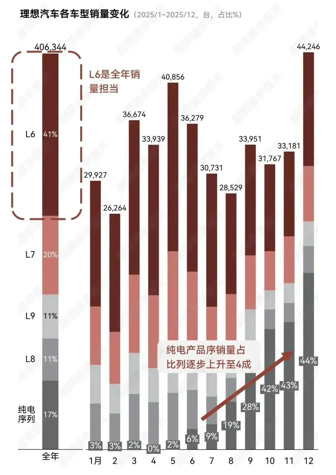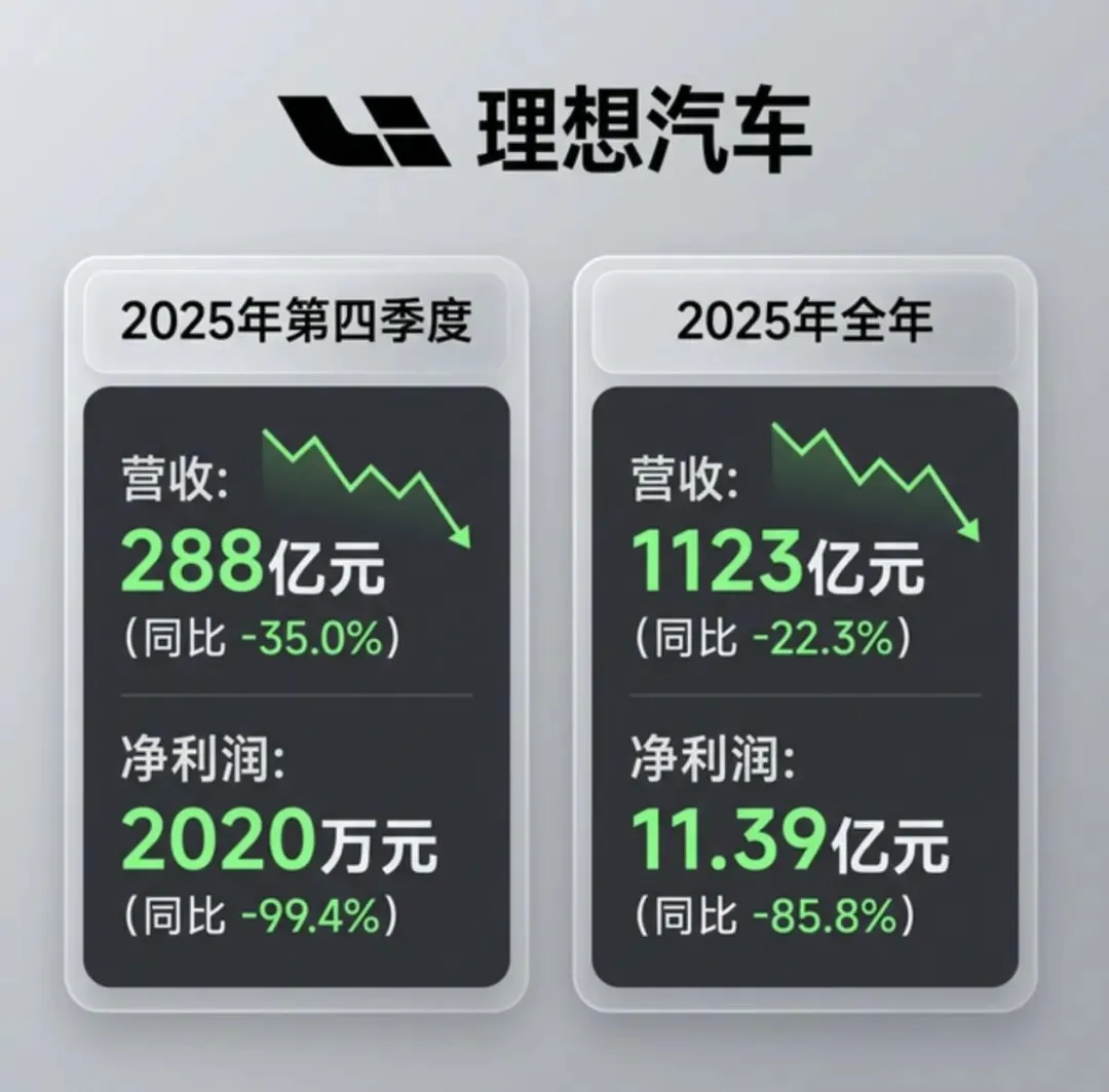 “理想2026年的目标是在2025年40.63万辆的基础上实现超20%增长。”从理想汽车创始人李想的这番话可以看出,理想依旧野心勃勃。而就在此前,理想汽车刚刚公布了2025年全年的财务成绩单。这份之前不少市场人士担心会 “翻车” 的财报,最终交出了一组看上去似乎很矛盾的数据:全年交付40.63万辆,同比下滑18.8%;营收守住了千亿关口,定格在1123亿元,但净利润仅剩11亿元,较2024年的80亿元缩水了85.8%。更引人关注的是第四季度,尽管成功扭亏,但净利润只有2020万元,同比跌幅更是高达99.4%。曾经一路高歌猛进、被看作造车新势力里“最会赚钱”的理想汽车,如今正在遭遇前所未有的业绩下滑。不过,外界还有另一种声音出现:一方面,大和证券依然给出了“买入”的评级;另一方面,李想本人也明确提出,2026年是理想向“具身智能”企业转型的关键一年。那么,这究竟是单纯的“失速”,还是一场深度调整后的“换挡”?理想汽车在战略转型期的真实处境又是怎样的呢?理想的业绩滑坡,最直接的诱因就在于销量的下滑与产品结构的恶化。2025年全年交付量同比下滑了18.8%,不仅没能完成年初定下的70万辆的目标,就连后来调低到64万辆的目标,也只完成了六成多。曾经靠着销量和盈利稳居“新势力一哥”的理想,这一年被对手纷纷反超,掉到了行业第五。其中,作为基本盘的L系列承受了巨大的压力。在问界、零跑这些同样做增程车型的对手步步紧逼的同时,L7、L8、L9三款车型销量均呈现出明显的下行趋势。有数据表明,L9全年累计销量同比接近腰斩。理想之前靠“大空间+高配置”的家庭SUV路线一直很成功,可现在对手频繁更新换代,这套打法显然已经没那么管用了。以问界M9为例,其凭借华为ADS高阶辅助驾驶系统抢占了大量市场,有些月份理想L9的销量,甚至只有问界M9的四成左右。更深层的原因在于,理想赖以起家的增程式技术,红利正在被稀释。随着800V快充的普及和电池成本的下降,用户原本觉得“能用电就不加油”的安心感,被更方便的纯电用车体验打破了。乘联会数据也显示,2025年下半年,增程车在新能源汽车里的占比已经连续好几个月下降。更重要的是,如今对手的增程车都用上了更快的快充技术,可目前理想在售的L系列还停留在400V平台,尽管2026年改款后部分车型将升级为800V平台,但当下的技术优势的确已经出现了缺口。这样一来,销售结构的变化就直接反映到了财务数据上。2025年,理想的销量主要靠定价相对较低的L6托底,占比超过40%。这直接拉低了单车的平均售价,从第三季度的27.8万元,降到了第四季度的25万元左右。车价走低压缩了利润空间,理想长期保持的20%左右的车辆毛利率也就守不住了。第四季度车辆毛利率降到了16.8%。全年来看,车辆毛利率也从2024年的19.8%,落到了17.9%。不过,有汽车产业研究者指出,当毛利率接近15%,企业还是能维持基本运营,但战略和盈利空间会明显收缩,属于需要警惕的警戒线。理想将2025年定义为从单一增程向“增程+纯电”双轮驱动转型的攻坚之年,但这一转型开局就不太顺利。2024年3月,理想推出了其首款纯电MPV MEGA,因销量目标过高、充电网络建设滞后以及上市初期的网络舆论风波等原因,未能复制增程车型的成功。2025年7月,其推出了第二款纯电SUV i8,又因碰撞测试视频引发了舆论争议。同年9月,为提振销量而推出定价较低的纯电SUV i6,虽手握大量订单,却因电池供应链不足而无法按时交付,错过了最佳销售期。更要命的是,2025年10月,理想因冷却液防腐性能不足,主动召回了11411辆理想MEGA。这也是理想第一次召回,带来了超11亿元的一次性计提,直接导致当季净亏损6.24亿元,终结了连续11个季度的盈利纪录。不过,好消息是,i6的供应问题正在逐步得到解决。理想汽车总裁马东辉在财报电话会上表示,理想i6已经跨过了最艰难的产能爬坡期,进入了稳定交付阶段,后续月交付能力将达到2万台的水平。但在此之前,想靠多卖车来降低成本、提高利润的路并不好走。有报道称,i6在双供应商(宁德时代+理想自研)完成切换前,毛利率会低于15%。为了在纯电市场迅速站稳脚跟,理想不得不采取更有竞争力的定价策略——油电同价,但这在投资者眼中,无疑会打破对其高毛利原有的预期。面对企业的现状,李想非但没有选择少花钱、缩小规模,反而决定花更多的钱,全面向“具身智能”企业转型。2025年,理想在研发上投入了113亿元,创下历史新高,其中AI相关的投入占比超过了50%。而自研的5纳米制程智能驾驶芯片“马赫100”也已经完成了流片并搭载样车测试,计划2026年第二季度就能正式量产上车。理想方面称,单颗马赫100(1280TOPS)运行理想自研的VLA大模型时,有效算力可达英伟达Thor-U的三倍,双芯总算力2560TOPS,更是能达到后者的5-6倍。此外,自研的第三代增程器也将随全新一代理想L9上车,实现“无感发电”等升级。今年2月底,李想在朋友圈发了一段话,表达了其对AI的见解,他表示:在非AI时代,普通水平和顶级专家的差距如果是100倍,那么在AI时代,这个差距可能就会是10000倍。这番言论看似有些夸张,但也并非没有道理。当李想将理想汽车不再定位为一家汽车制造企业,而是一家AI企业时,“AI智能体”就已经成为了理想首要的发展战略和目标。此时回看理想更早一些的人事及管理模式的调整,其实就有所铺垫。2025年下半年以来,多位涉及智驾、产品、芯片、供应