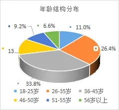 年龄结构:36-45岁年龄段受访者在总人数中占比最高,达33.8%(169人);26-35岁次之,占比26.4%(132人);两者合计占比超过60%,说明中青年群体是宠物饲养的主力军。其他年龄分布如下:18-25岁占比11.0%(55人);46-50岁占比13.0%(65人);51-55岁占比9.2%(46人);56岁以上占比6.6%(33人)。