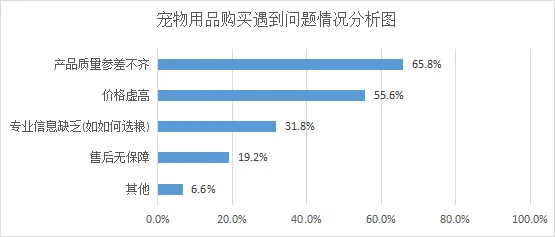 产品质量参差不齐最为突出,占总人数的65.8%(329人);价格虚高占比55.6%(278人);专业信息缺乏占比31.8%(159人);其他占比6.6%(33人)。(详见下图)