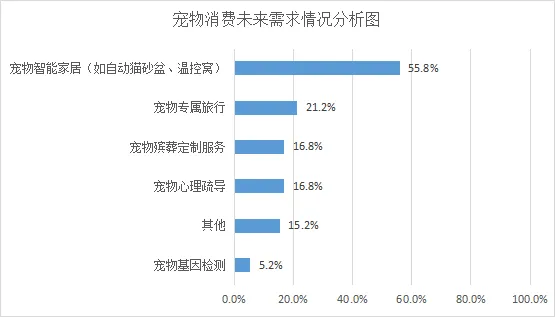 未来1年内,有279位被访者(55.8%)计划尝试宠物智能家居(如自动猫砂盆、温控窝);有106人(21.2%)计划尝试宠物专属旅行;有84人(16.8%)计划尝试宠物心理疏导;有84人(16.8%)计划尝试宠物殡葬定制服务;有26人(5.2%)计划尝试宠物基因检测。智能宠物产品成为未来消费的核心增长点,个性化、情感化服务需求逐步凸显。(详见下图)