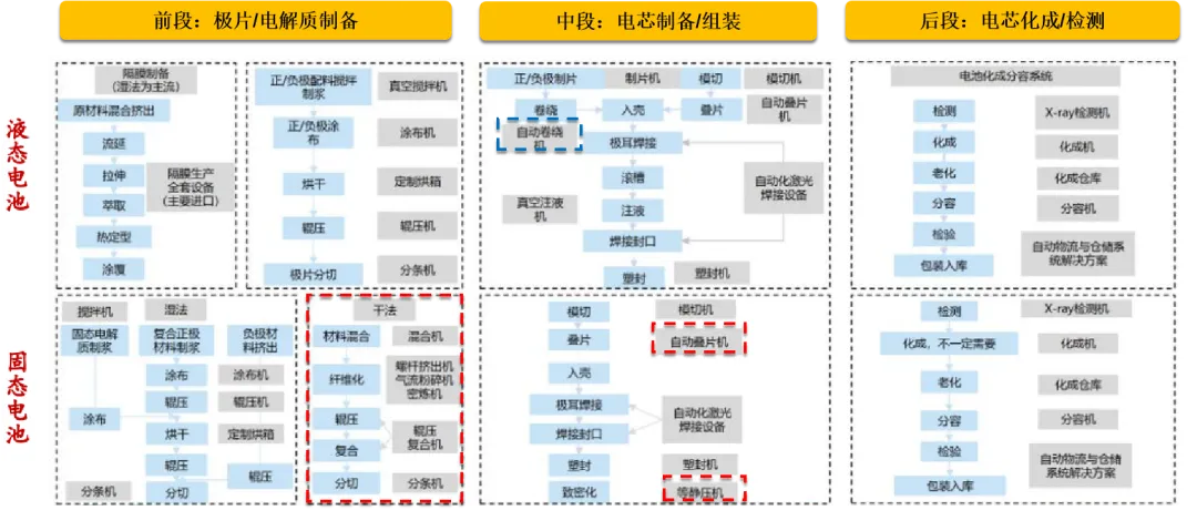 设备是实现技术落地的“铲子”,设备先行是产业化的必然规律。固态电池带来了显著的设备增量和升级需求。