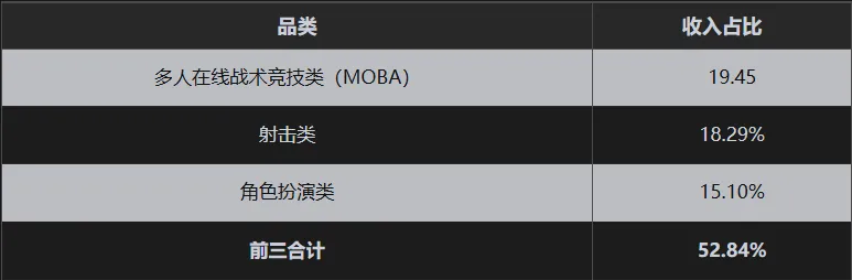 射击、MOBA品类吸金能力强劲
