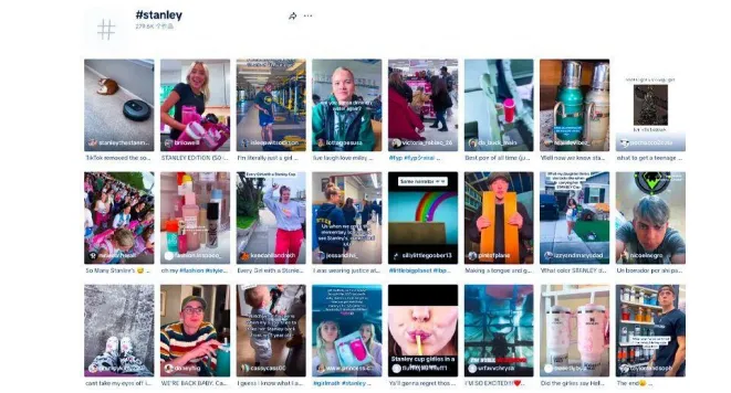 强化社交媒体内容种草。与消费者进行互动,进行社交营销,将 Stanley打造为年轻女性的必备潮流单品。TikTok 上,用 Stanley 整活、Stanley拆箱、Stanley 使用测评、购买 Stanley 第一视角等内容层出不穷。有消费者变为 Stanley 的狂热收藏粉丝,家中会摆上十几个不同颜色的Stanley,Stanley 还变成了一种“社交通货”,作为“女孩最想收到的圣诞礼物”“送给闺蜜的礼物”而被推荐。