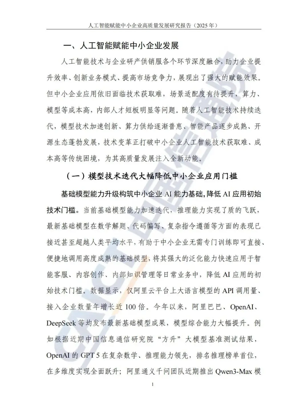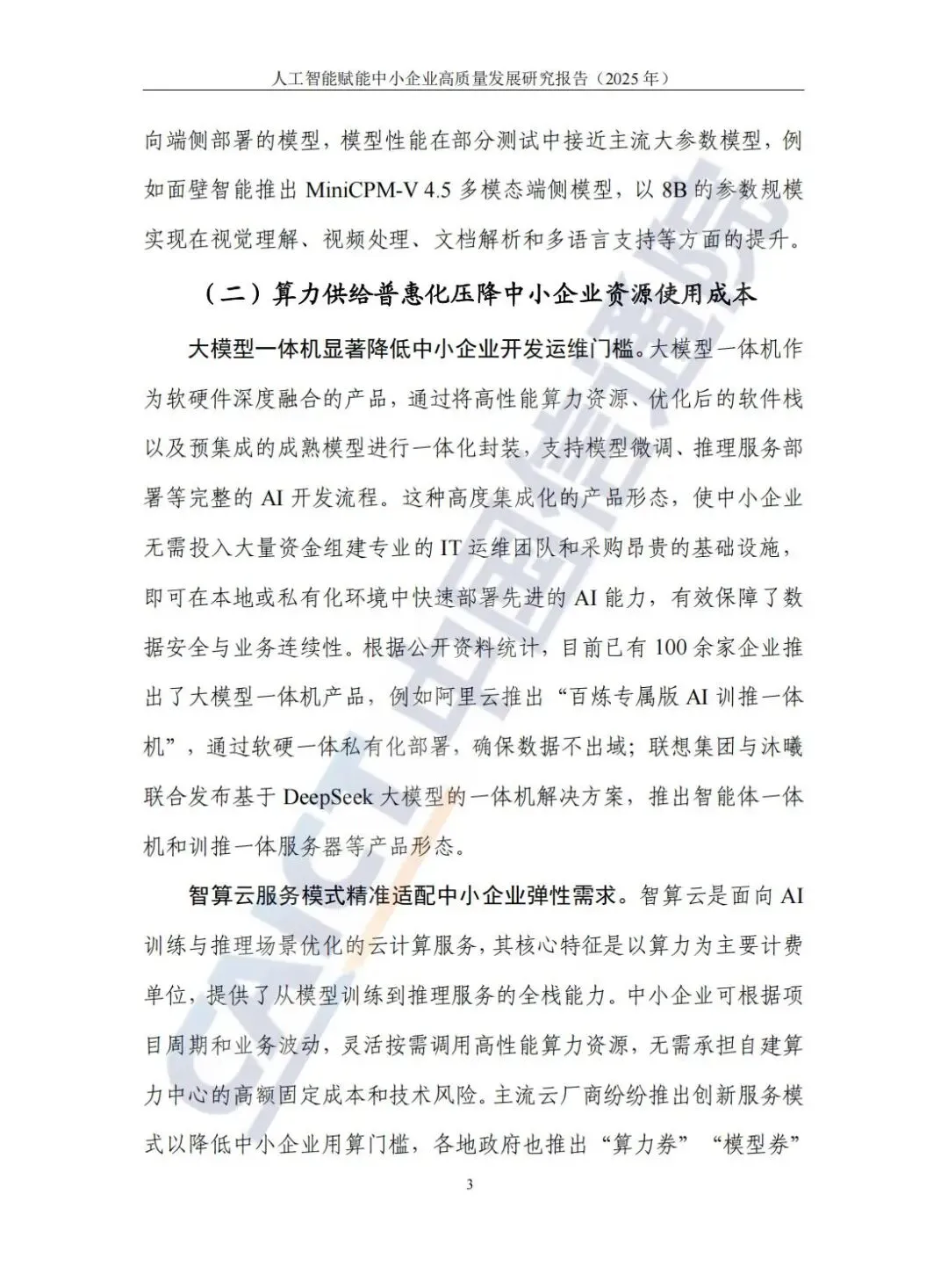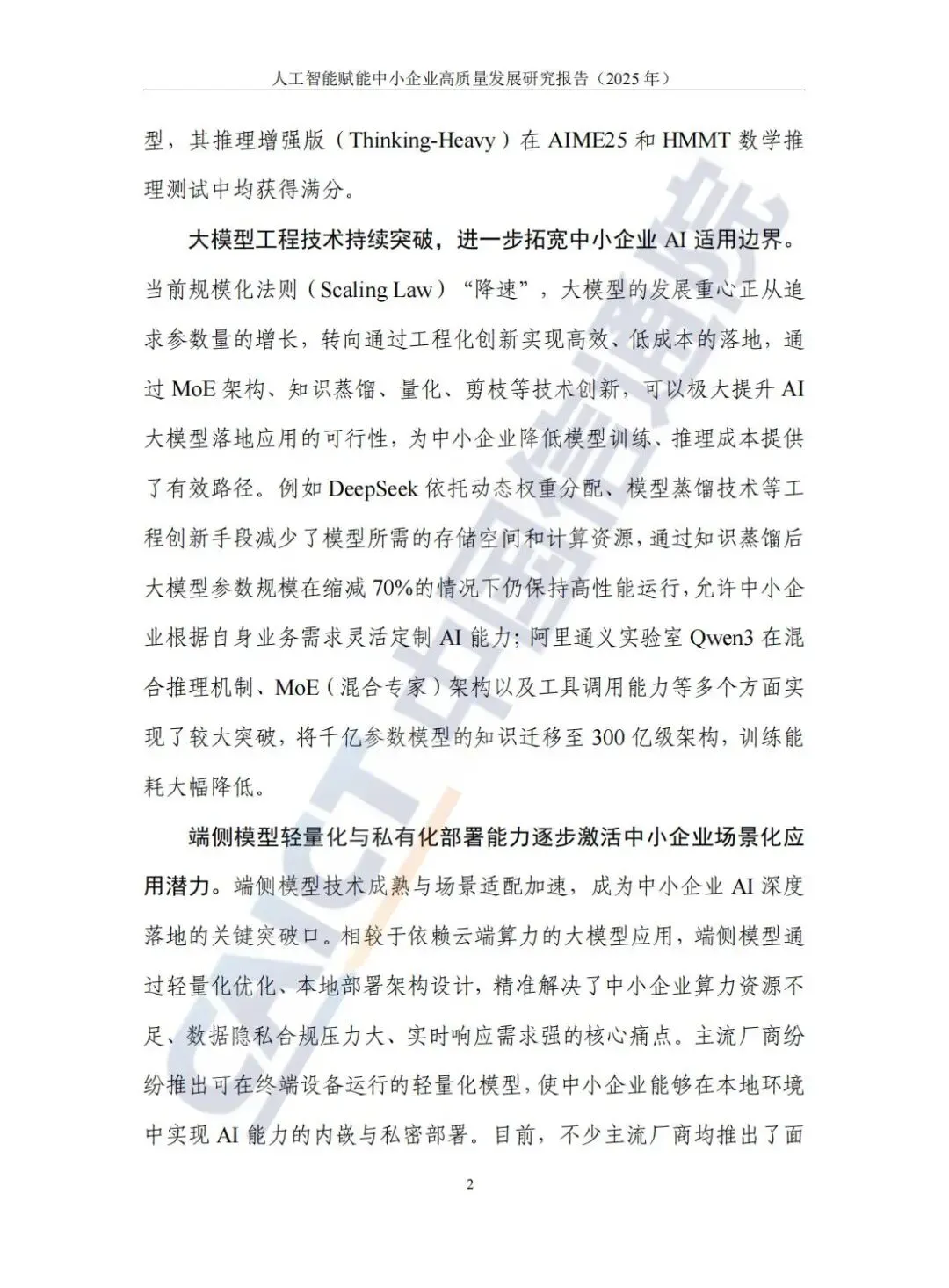 ✔今日报告:人工智能赋能中小企业高质量发展研究报告(2025年)中国信通院-44页