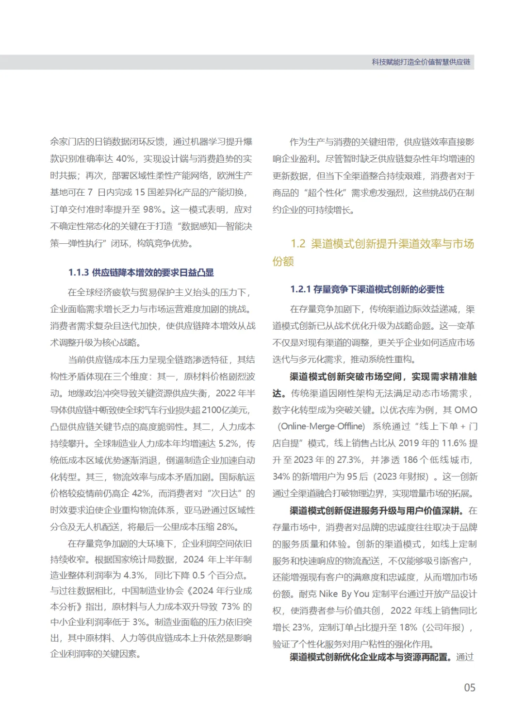 报告指出,当前供应链行业迎来多重发展新需求,也面临诸多核心挑战。存量市场下全球经济增速放缓,2024-2025 年全球经济增长率预计仅 2.7%,企业供应链降本增效需求凸显;数字经济成为核心驱动力,2023 年我国数字经济规模达 53.9 万亿元,占 GDP 比重 42.8%,三次产业数字经济渗透率分别达 10.8%、25.0%、45.6%,推动供应链数智化转型加速;双碳目标与扩大内需政策也对供应链绿色化、模式升级提出新要求。而行业现存痛点集中在思维模式变革滞后、专业复合型人才供给不足、信息孤岛问题突出、缺乏生态平台运作策略等方面,家电行业尤为典型,超 90% 家电企业开展数智化转型探索,但近 50% 企业认为数字化人才缺乏是主要障碍。