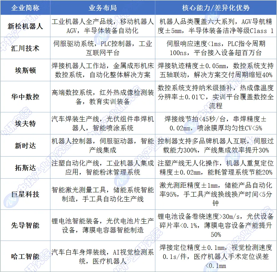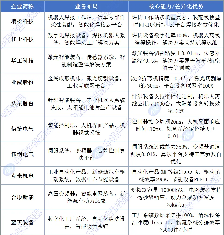 图表:中国重点智能制造装备企业分析