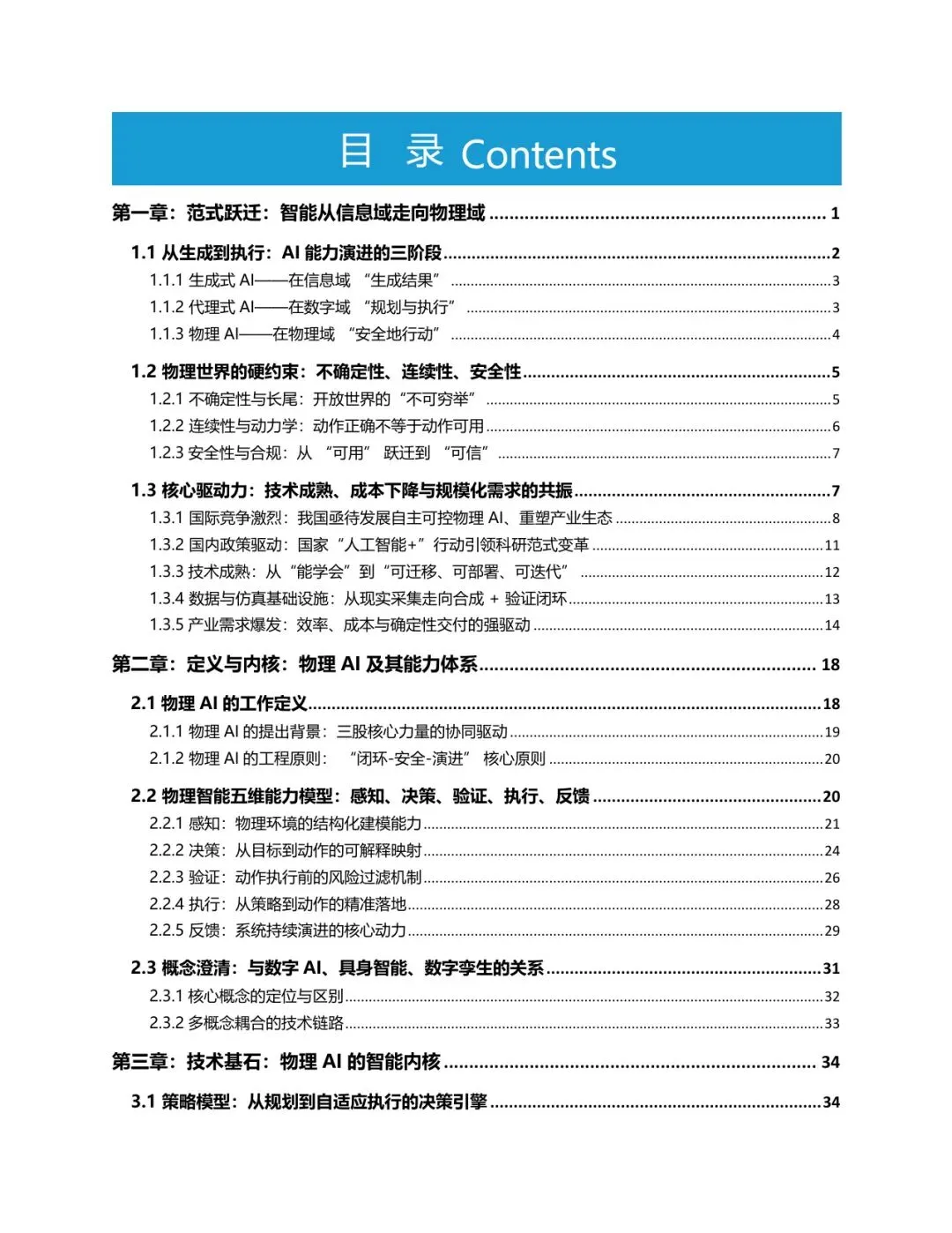 第三章:技术基石:物理AI 的智能内核 .. 34