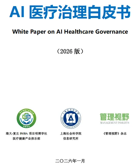 2026年1月,由上海社会科学院信息研究所联合港大-复旦IMBA项目明博学社医疗健康产业俱乐部、《管理视野》杂志共同编制的《AI医疗治理白皮书(2026版)》正式发布