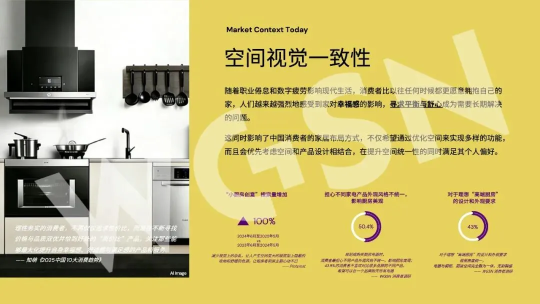 厨房正从“功能性后台”跃升为“家庭社交C位”,而集成厨电是这场空间革命的关键破局者。报告显示,中国超六成城市家庭厨房不足8㎡,却要承载繁多厨电,导致“高密度、碎片化”。47.7%的消费者担忧嵌入式家电功能使用,45.4%苦于操作逻辑不一。