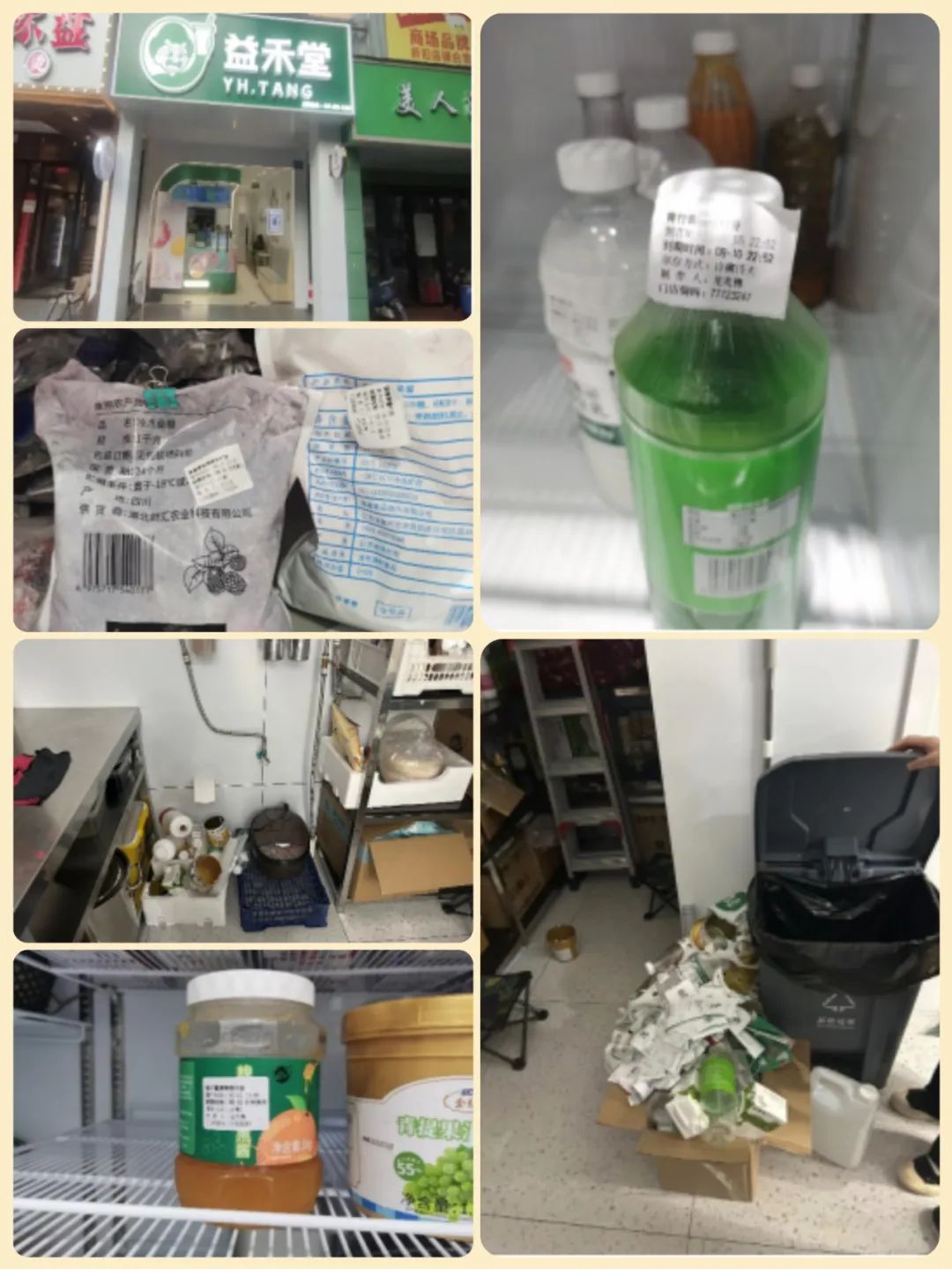 曝光理由:操作区和储藏间垃圾等杂物较多,容易滋生细菌;果粒、果酱等预制食品用料多批次存在超过最佳使用期现象。