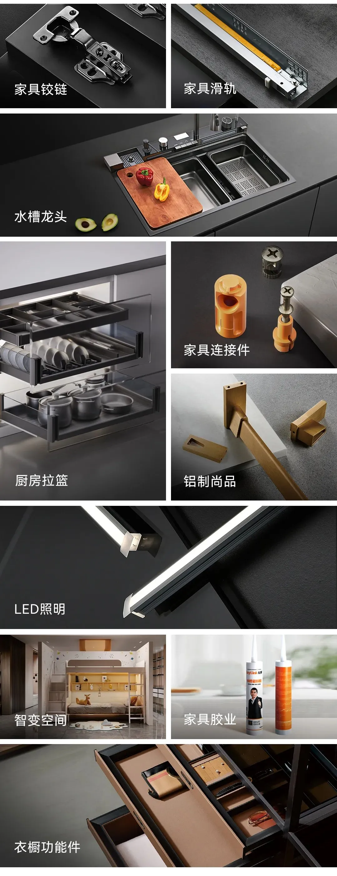 左邻五金的入局,其最大的底气与独特性在于,它并非以单一产品切入,而是携一整套成熟、完备的五金生态系统而来。这套系统全面覆盖了定制家居从基础结构到高端功能的全部核心需求。
