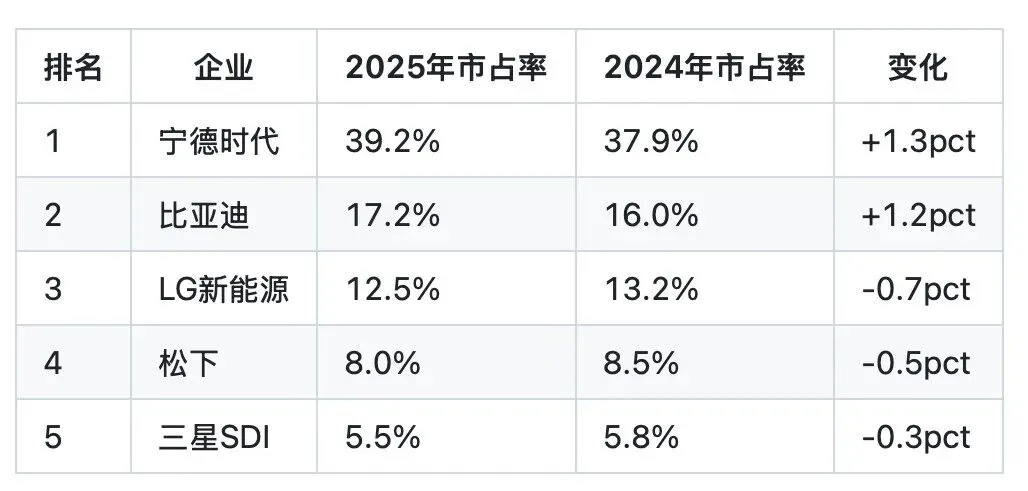 市场集中度提升:宁德时代、比亚迪、LG新能源三强格局稳固