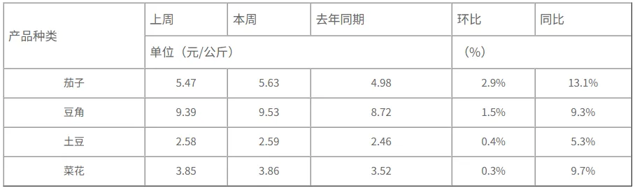 全国286家产销地批发市场19种蔬菜平均价格为4.22元/公斤,比上周下降2.8%,同比上升6.8%。