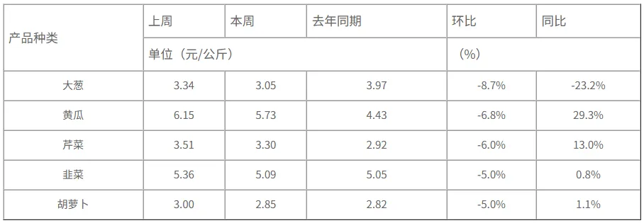 表4 环比下降幅度较大的蔬菜