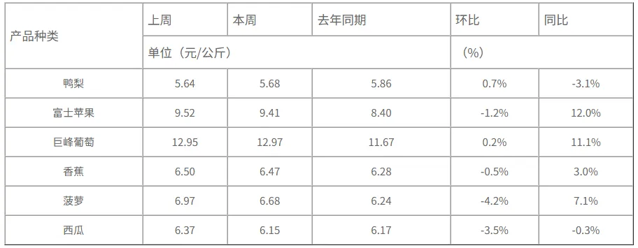 表5 重点监测的水果价格及变化幅度