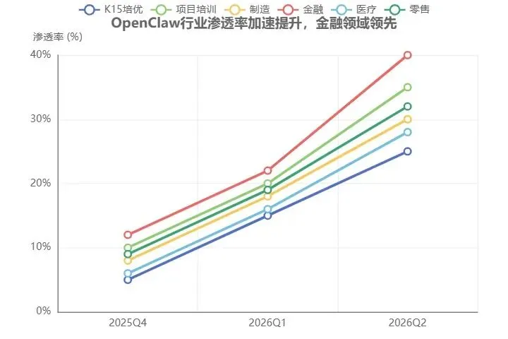 图表1:OpenClaw在各行业的渗透率趋势(2025-2026)