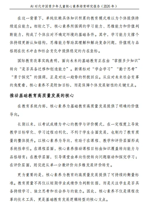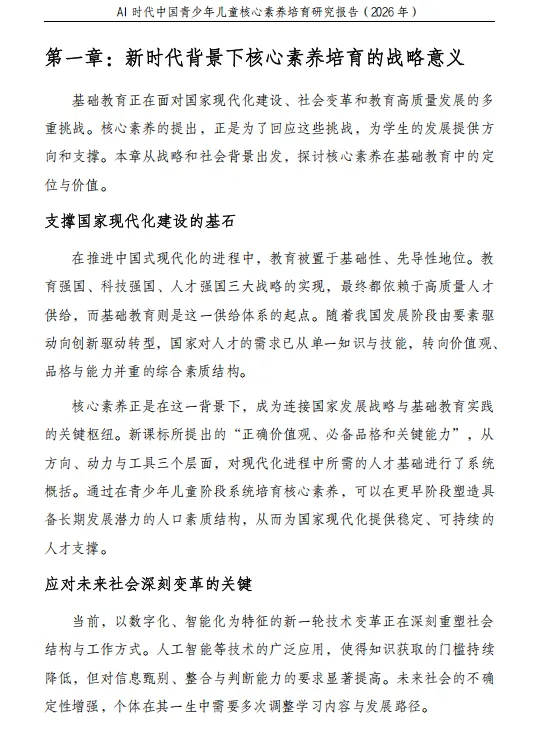 AI 时代中国青少年儿童核心素养培育研究报告:未来孩子拼的不是知识,是这 6 大能力