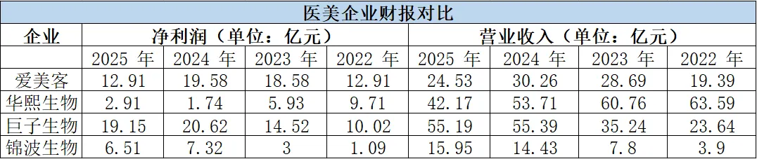 2025年的核心关键词是“分化”。曾经齐头并进的医美上游巨头们,首次出现了显著的增长差异。