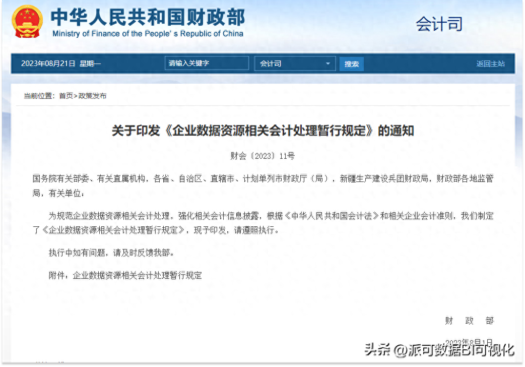 2023年8月21日,财政部制定印发了《企业数据资源相关会计处理暂行规定》(以下简称《暂行规定》),自2024年1月1日起施行。