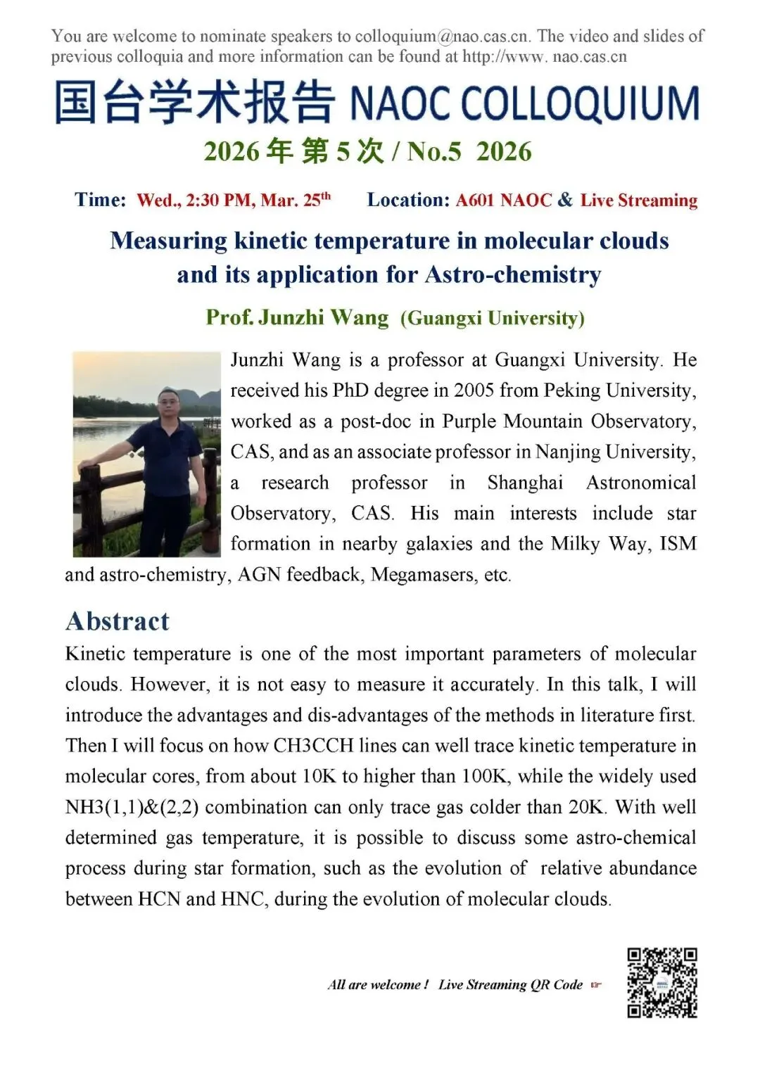 ▷题目:分子云运动学温度的测量及其在天体化学研究的应用