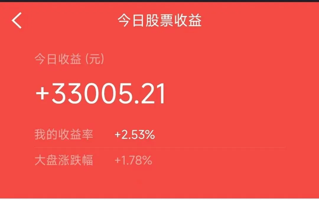 今天收盘,账户浮盈33005元,收益率2.53%,跑赢大盘。