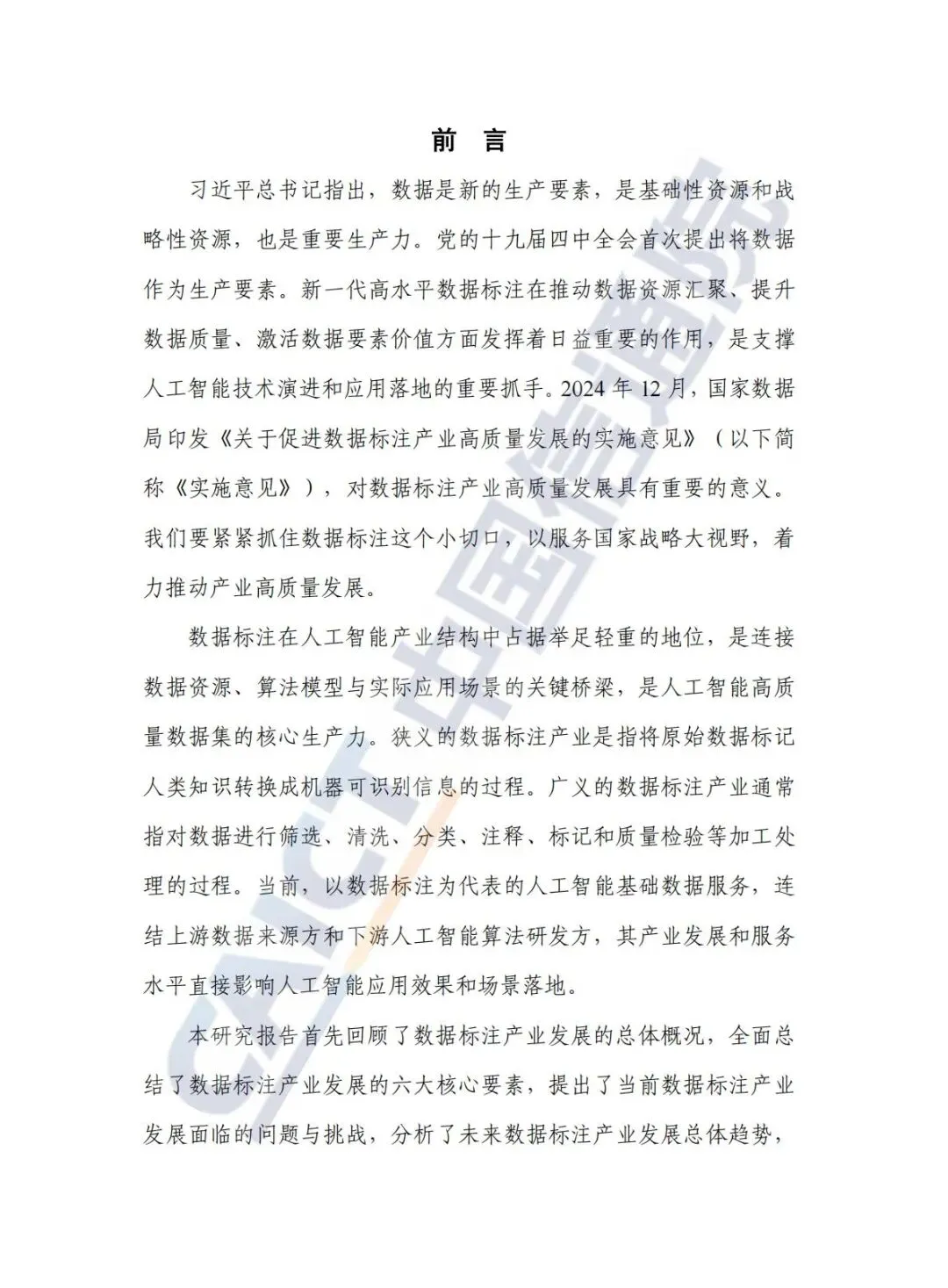 本报告由中国信息通信研究院联合中国电信等多单位编制,以数据标注产业为核心,系统梳理其发展概况、现状机遇、核心要素、未来趋势及推进建议,为政策制定者、行业从业者等提供全面参考,旨在推动产业高质量发展以支撑 AI 与数字经济进步。