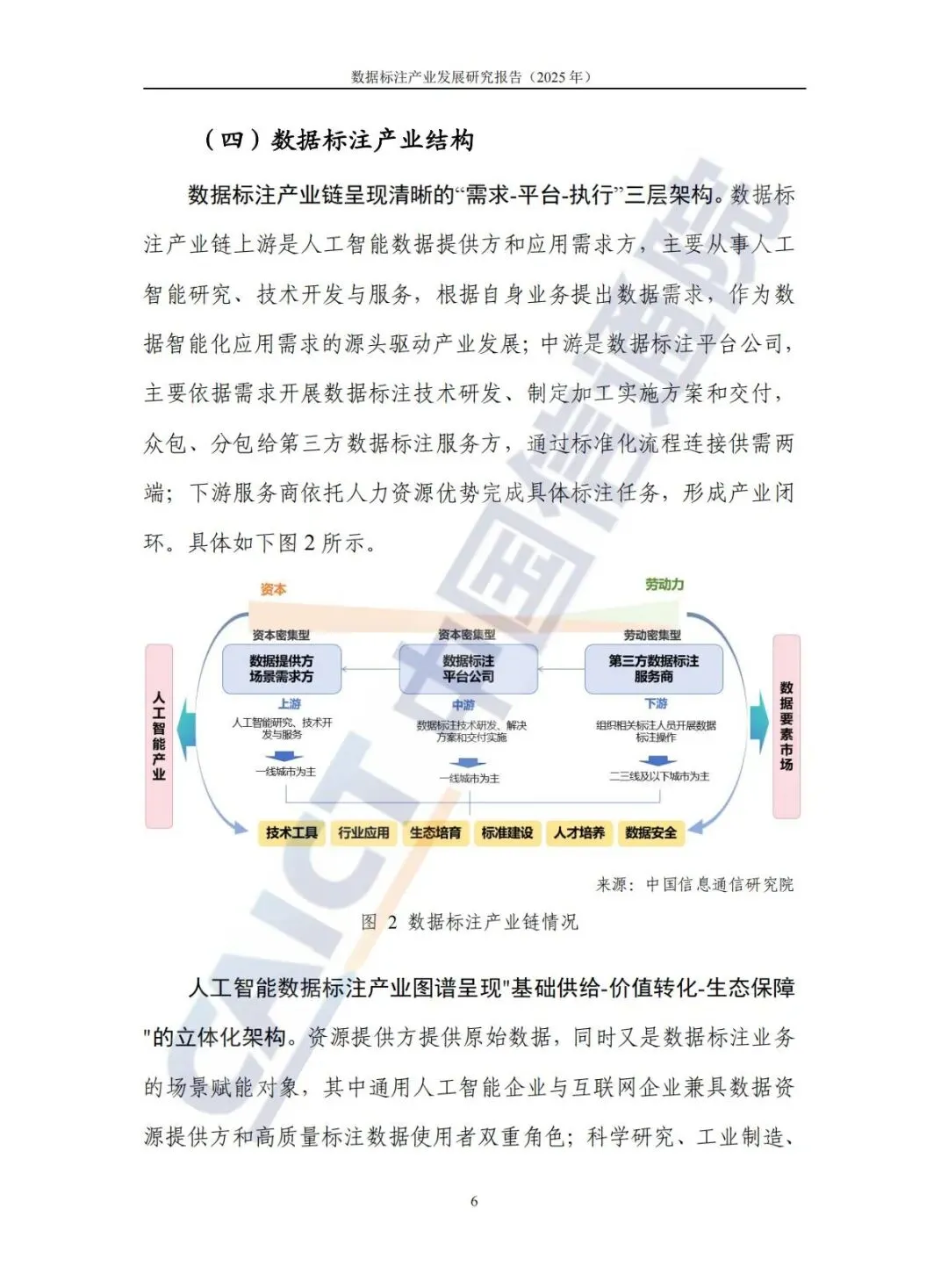 产业链架构:呈 “需求 - 平台 - 执行” 三层 —— 上游(AI 研究 / 技术开发方,提需求)、中游(标注平台公司,研技术 / 连供需)、下游(第三方服务商,落实操),分别以一线、一线、二三线城市为主要布局。