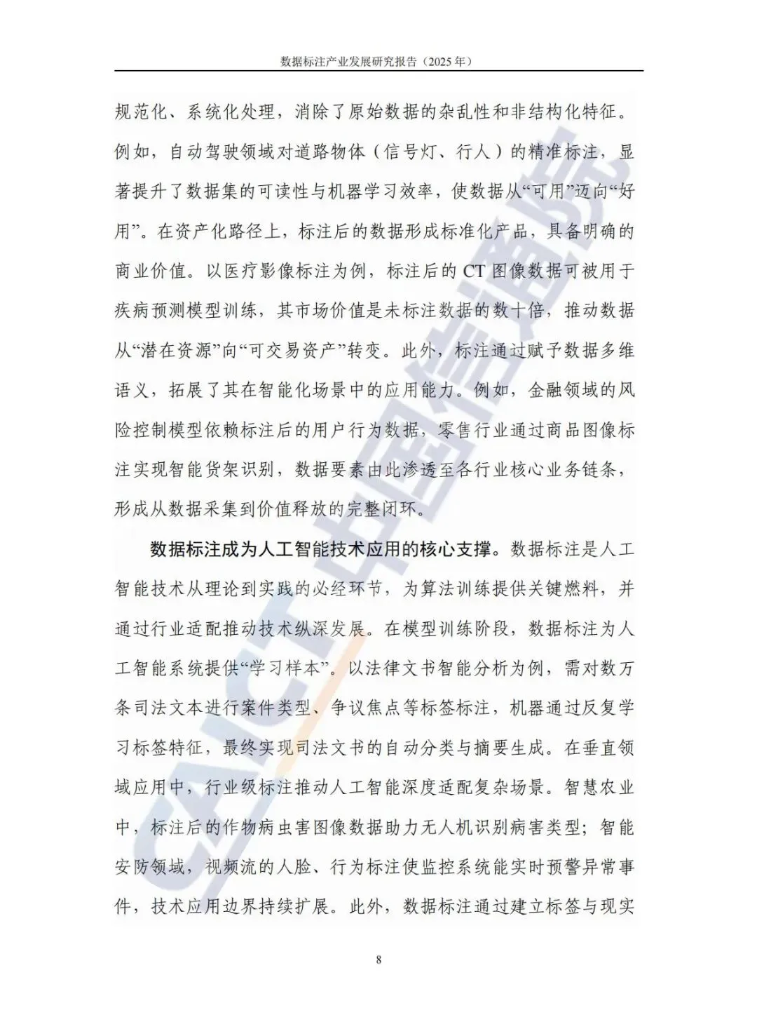 核心意义:三重价值支撑 ——①数据价值引擎:将原始数据转化为高价值资产(如医疗影像标注后价值达未标注的数十倍);②AI 落地基石:为算法训练提供 “燃料”(如司法文本标注支撑法律文书智能分析);③要素融合纽带:串联数据资源与 AI 技术,推动跨行业创新(如公共交通数据标注赋能自动驾驶)。