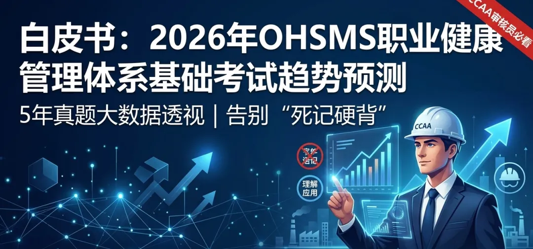 针对近两年考生普遍反映的“新题多”、“偏题怪”的现象,考生的知识盲区往往集中在术语的细微差异和跨界法规的关联上。本白皮书发出以下备考风险预警:●极高风险预警:社会心理风险与工效学的深水区传统的OHSMS实务和考试极少涉及人的精神状态,大多停留在防尘、防毒、防坠落。但随着GB/T 45003-2024的出台,涉及“工作组织方式(如过度加班、不合理的绩效考核)、社会因素(如职场欺凌、骚扰、孤立)、以及人机工效学失配带来的慢性心理压力”将成为出题的重灾区1。考生切不可再将危险源仅仅局限于传统的物理和化学因素,必须建立起“生理+心理”的双维风险识别视角。●中高风险预警:绩效监视与测量概念的细微法理辨析在过往考试中,“监视”(Monitoring,偏向于定性观察状态,如查找工作中的不安全行为)与“测量”(Measurement,偏向于定量赋值,如使用仪器测算安全距离、统计事故率)的区分常被考生混淆忽视1。未来,基于数据驱动的数字化绩效管理理念,极有可能在多选题或判断题中,要求考生在复杂的巡检记录与数据统计表中,准确剥离并区分这两类活动的法定性质与适用条款。●中风险预警:《安全生产法》罚则与特定许可的颗粒度深化随着新《安全生产法》的深入贯彻,命题将不仅仅停留在“责任制”这种宏观层面。未来极有可能向特定高危作业(如动火作业、有限空间作业、吊装作业)的法定现场管理程序,以及特种设备在全生命周期(设计、制造、使用、检验)的法定验证与资质要求延伸。考生需适度拓展对相关核心法律条文的法理理解。结语