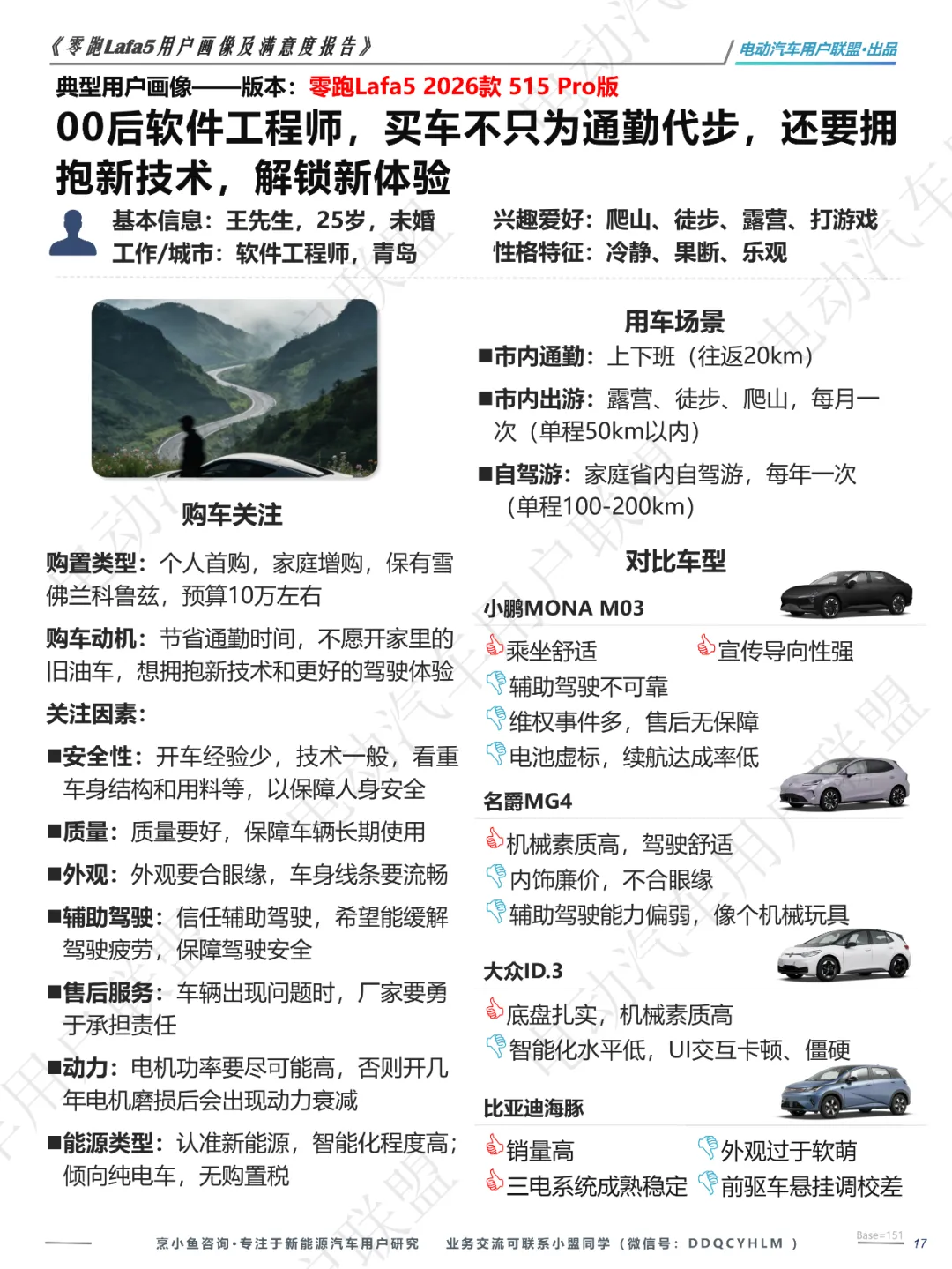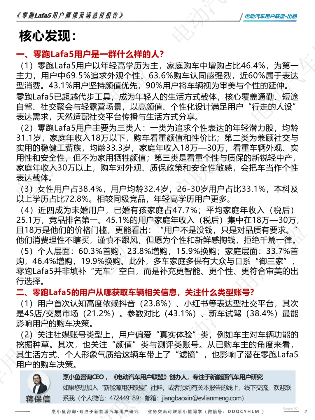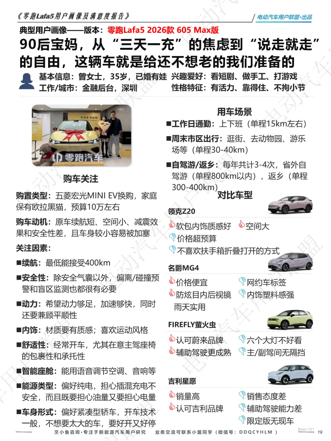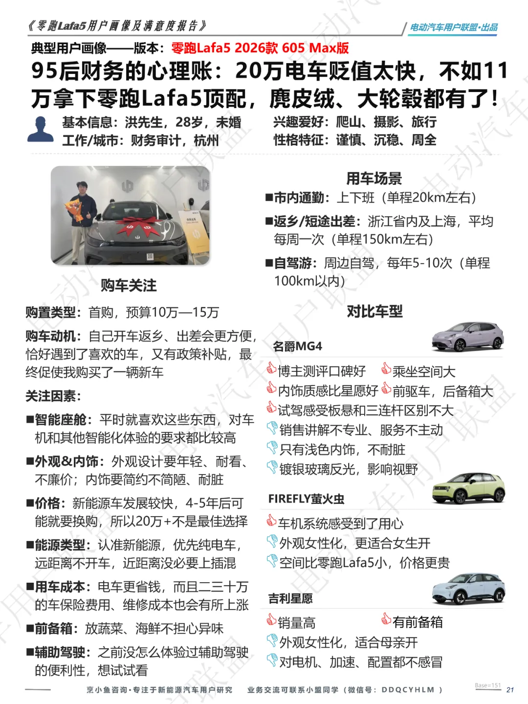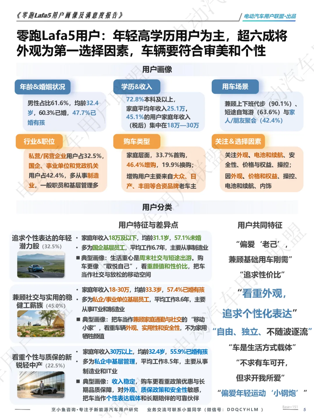 零跑Lafa5究竟吸引着哪一类年轻人?他们的生活状态、消费偏好、购车动机是什么?为了读懂每一位选择零跑Lafa5的“你”,我们调研了151位真实车主,带来这份《零跑Lafa5用户画像调研报告》,用数据还原最真实的年轻车主群像。