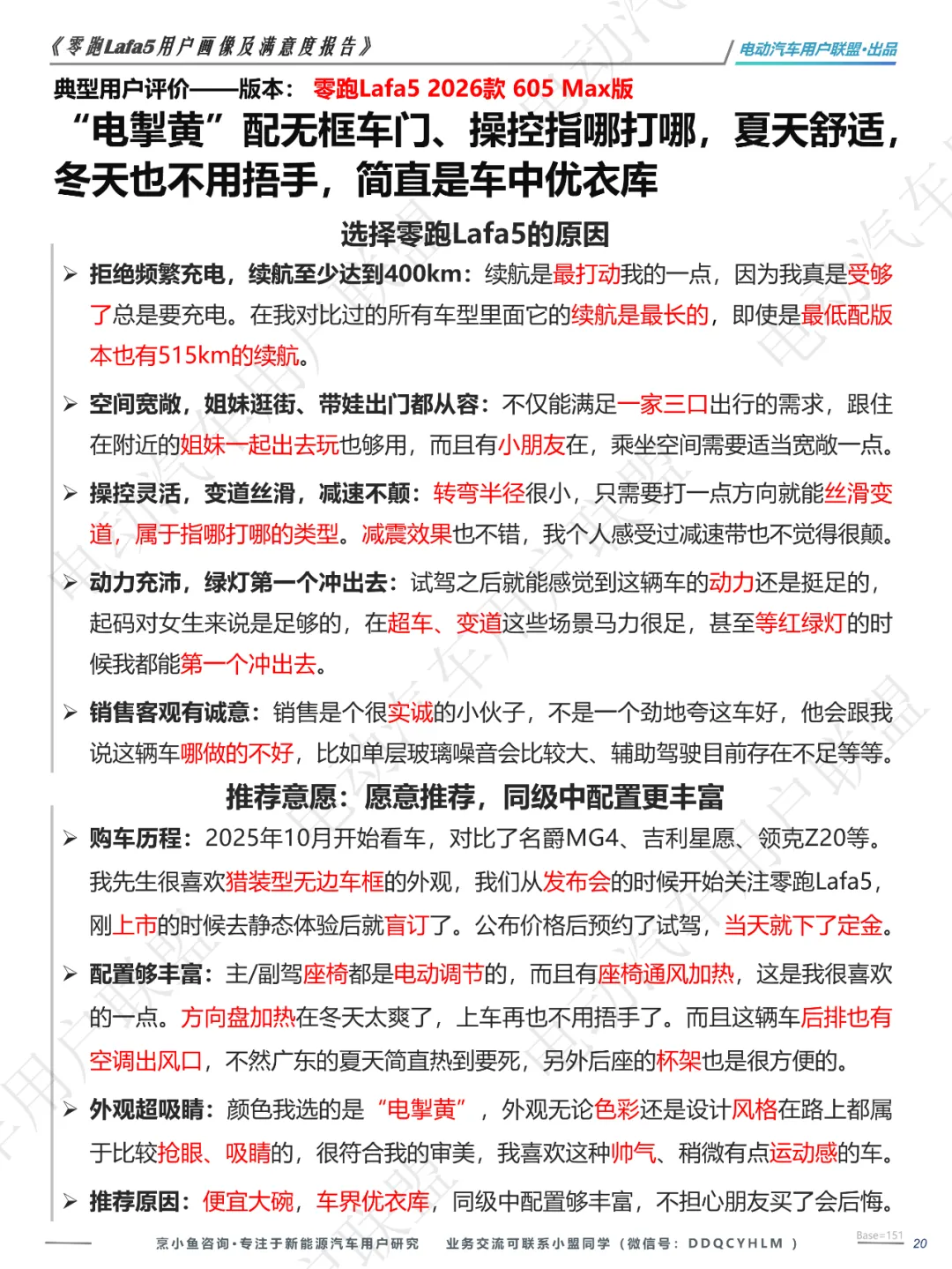 在本次真实车主调研中我们也发现,不少年轻用户将零跑Lafa5视作专属的“行走人设”与出游搭档。
