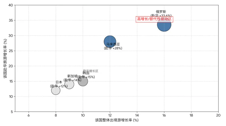 携程平台数据显示,日本、韩国、新加坡、马来西亚、俄罗斯是目前中国入境旅游主要客源国。从游客增量看,马来西亚和俄罗斯也都是增长较快的来源市场。换句话说,这两个市场本身就是当前北京入境客源结构中不可忽视的一部分。