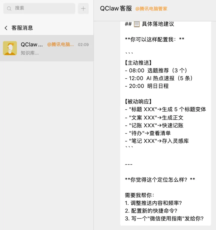 微信只是个通道,把虾接进来,打上“AI”标记,可以和它聊天。冷静而克制
