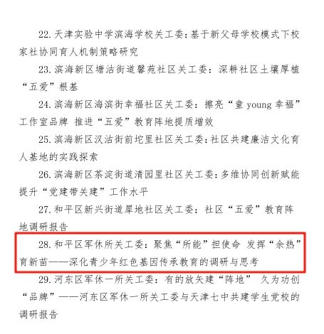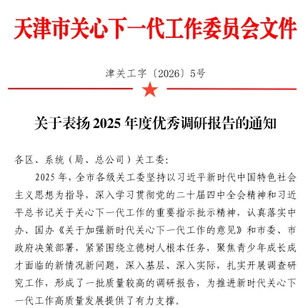 和平区军休关工委调研报告荣获2025年度市关工委优秀调研报告三等奖!