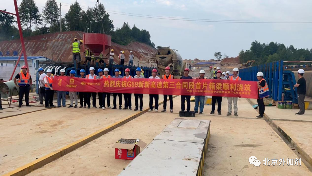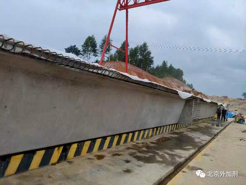 该项目由中国十九冶集团有限公司承建,是湖南省“七纵七横”高速公路网的重要组成部分,更是被列为中国五矿、中冶集团重点项目。项目前期,特材公司技术团队对现场原材料性能、混凝土状态等做了大量实验和数据采集,对不同材料情况下的数据进行分析和反复验证,确保了外加剂在混凝土中的稳定性和适应性,同时也保证了施工时混凝土工作性能达到最优状态。项目施工过程中,特材公司技术人员从生产到现场浇筑,再到拆模养护,全过程全天候现场服务,技术团队克服诸多难点,最终保证首件预制箱梁浇筑顺利完成,并避免了梁体气孔、砂线和色差的出现。