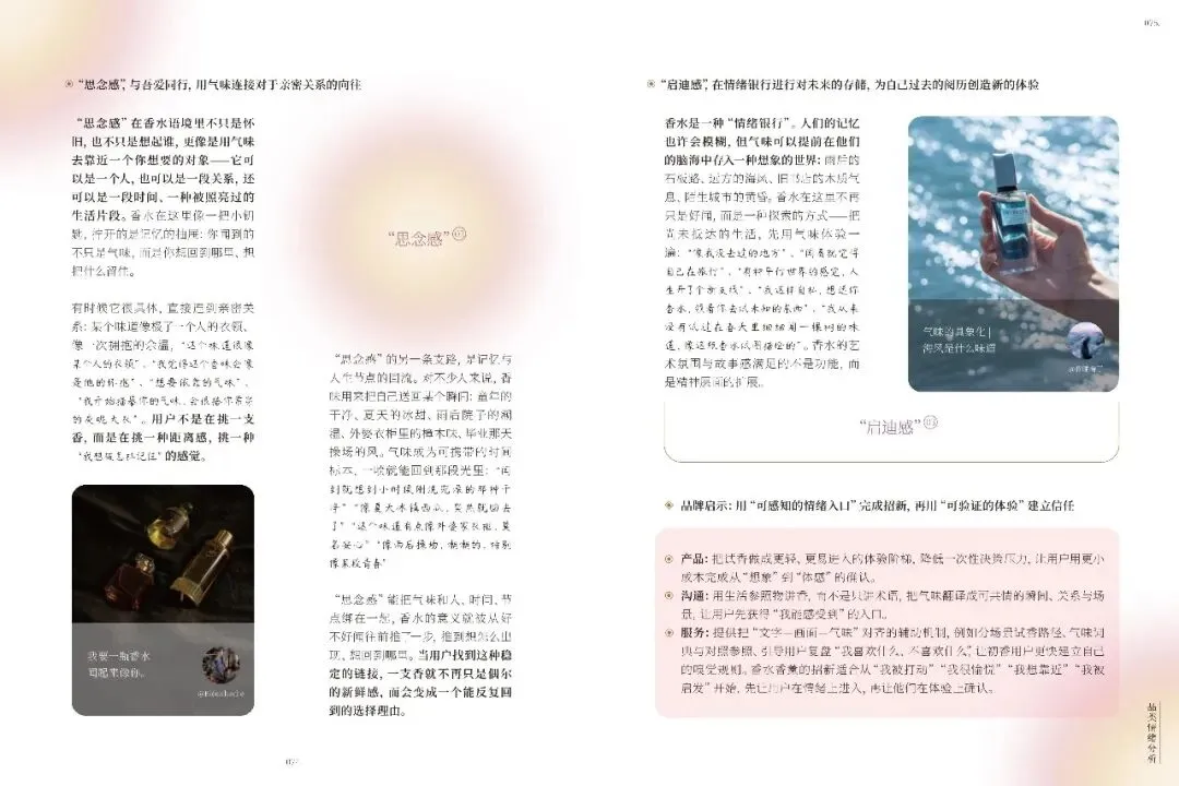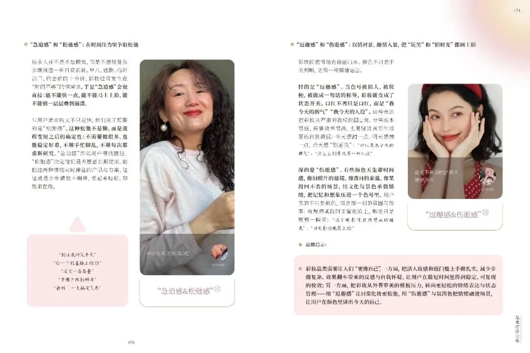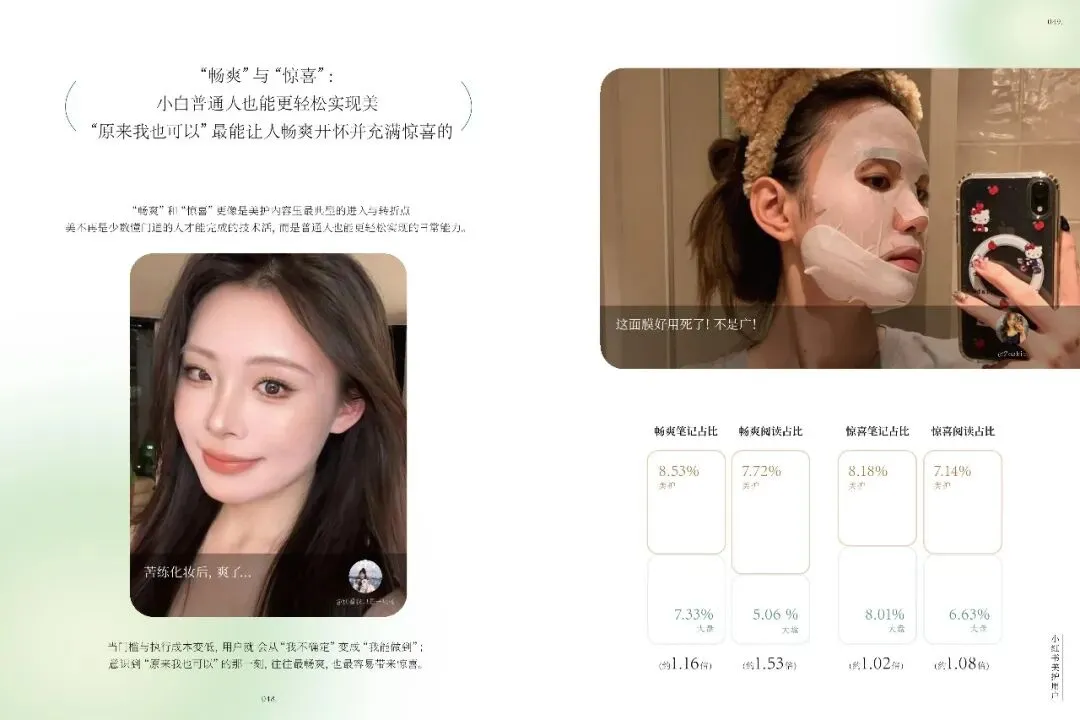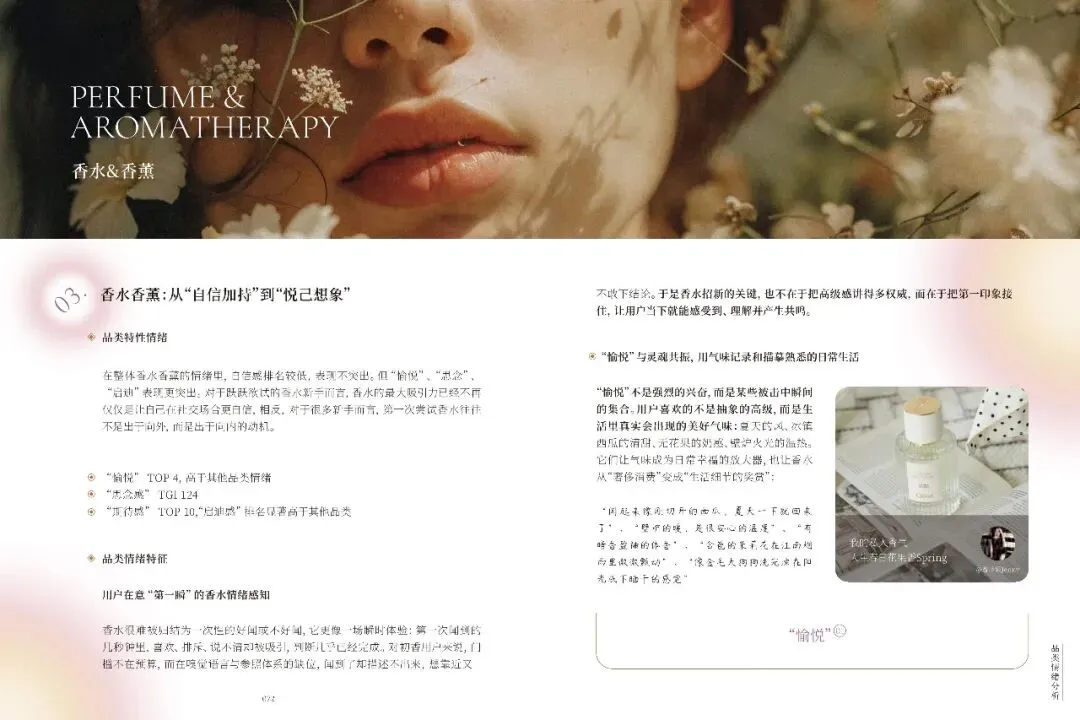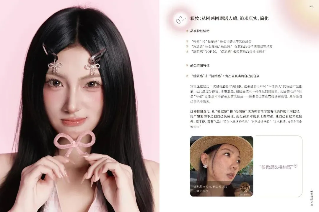 不同品类如美容护肤、彩妆、香水等,各自触发独特情绪,品牌需精准把握。礼赠场景中,情绪任务多样,品牌需提供关系适配产品与服务。小红书美护用户追求真实、积极生活,品牌应营造可亲近氛围,提供低门槛、高反馈的产品。十大情绪趋势显示,用户偏好真实、自信、有掌控感的美,品牌需不断创新,满足用户多样化情绪需求,以情绪驱动商业创新,建立长情共鸣。