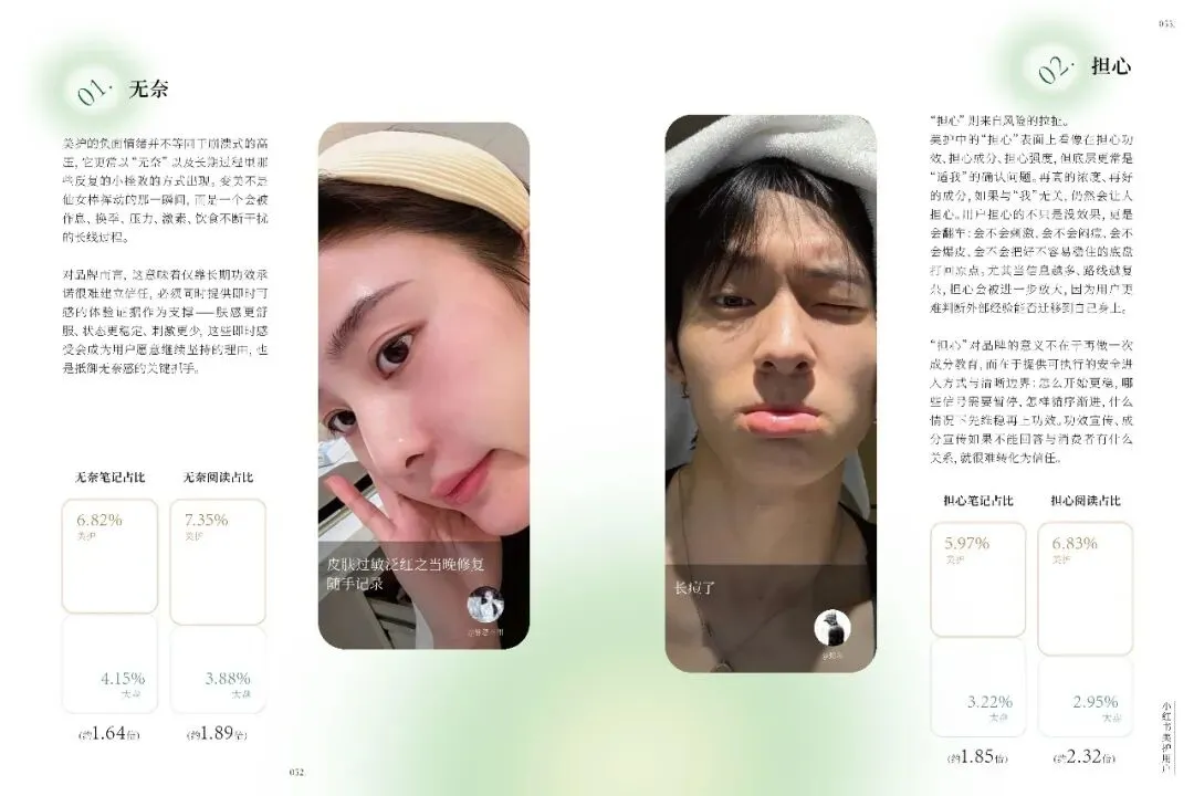 白皮书揭示了美护消费背后的情绪驱动。用户选择美护产品不仅关注功效,更在意解决自卑、焦虑等深层心理需求。小红书作为美护消费第一现场,通过95种情绪标签体系,精准捕捉用户情绪,指导品牌策略。美护行业正迈入“情绪主位”时代,情绪成为品牌与用户建立共情能力的关键。