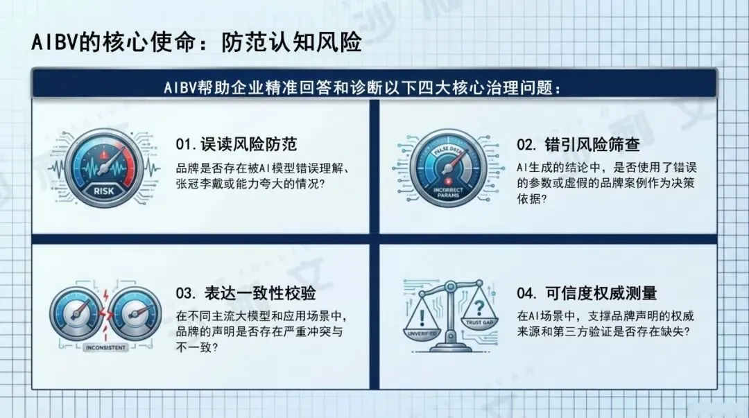 白皮书另一重要突破在于提出统一的评估框架——AIBV(AI品牌资产表现指数系统)。AIBV并不是一个孤立的指数,而是整本白皮书前面所有判断、概念和方法论,走到量化管理阶段之后的自然落点。它的作用,不只是“评估一个品牌现在怎么样”,更重要的是帮助企业回答三个问题:第一,品牌在AI时代的资产当前处于什么状态;第二,问题究竟出在表现、建设还是风险层面;第三,应优先补什么,才能真正提升在AI答案时代的竞争力。