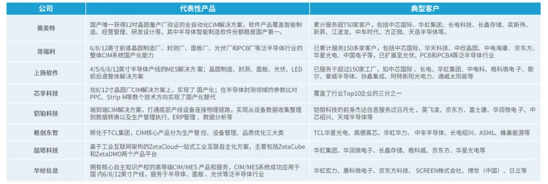 CIM系统是半导体制造的关键生产管理软件,集成了制造执行系统(MES)、设备自动化方案(EAP)、良率管理系统(YMS)等核心模块。该领域长期被应用材料和IBM两家国际巨头断。随着国内半导体产业蓬勃发展,国产CIM开始展现出强大竞争力。国内企业通过自主创新,已在6英寸8英寸等领域取得突破,并在12英寸产线的MES系统上初步实现了替代。