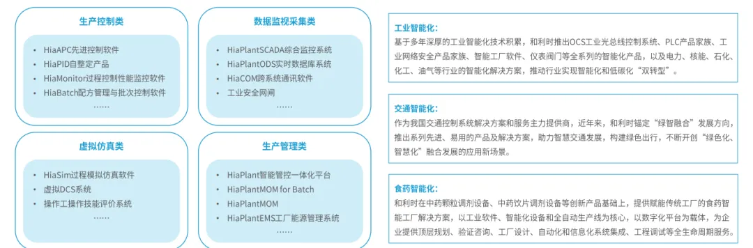 →在工业智能化领域,和利时的软件解决方案已深入流程工业(如石化、化工)与离散制造(如汽车、3C)场景。通过HiaAPC先进过程控制、HiaMOM生产运营管理系统等核心工业软件,结合AI与大数据平台,企业能实现工艺优化、质量追溯、设备预测性维护等深度智能化应用。在交通与食药两大战略性新兴领域,其软件能力同样实现了专业化延伸。
