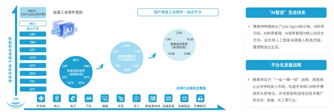 赛美特信息集团股份有限公司(简称“赛美特”)是国内领先的智能工业软件解决方案供应商。公司依托扎实的技术能力与丰富的行业经验,通过标准化产品与垂直场景深度定制相结合的模式,持续助力制造企业实现智能化、自主化与低碳化升级。目前,业务已广泛覆盖半导体、光伏、电池制造、装备制造、化学工业、有色金属及汽车零部件等多个关键工业领域。