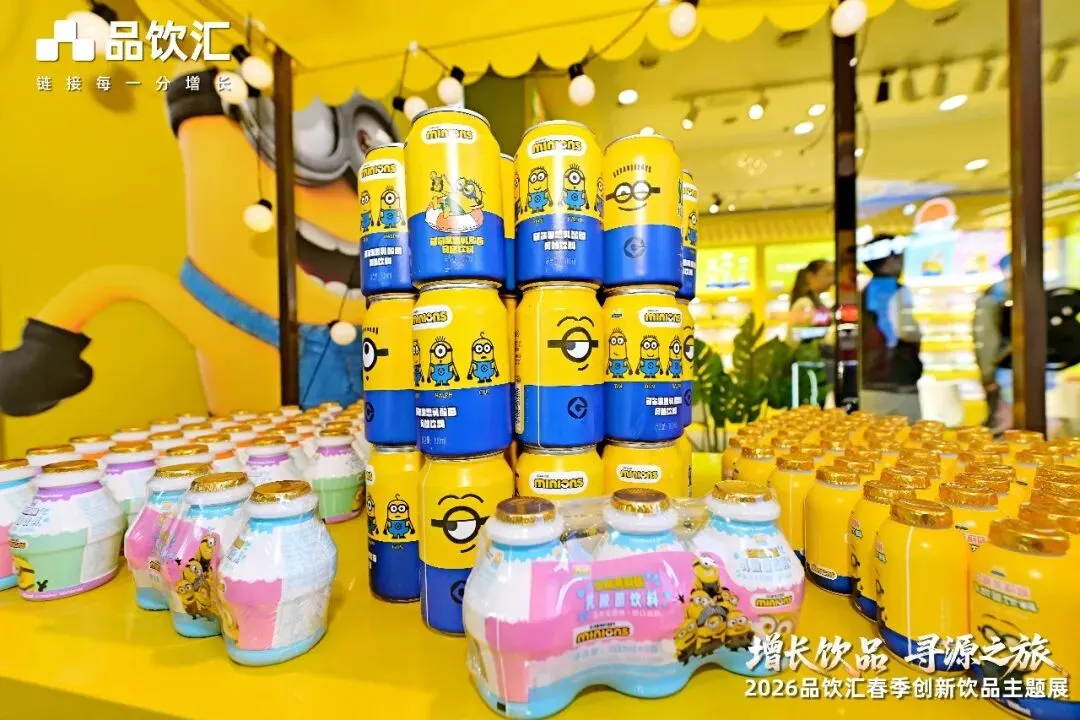 本次春糖,天惠除了推出植系双品牌新品,小黄人联名饮品更是核心亮点!联名系列依托天惠硬核的0添加工艺与HPP锁鲜技术,结合小黄人超高国民度与萌趣IP形象,打造适配全年龄段的潮流饮品,高颜值定制包装吸睛度拉满,精准触达亲子家庭、年轻消费群体,解锁饮品消费新场景;同时天惠还带来植校长蓝莓胡萝卜汁、植养纪轻卡纤蔬饮两大植系新品,前者专为6-12岁儿童研发,NFC工艺+5mg叶黄素酯打造护眼果蔬汁,0添加更安心;后者主打HPP高端轻体,每瓶含≥5g膳食纤维,6种果蔬科学配比,适配都市白领控卡需求。
