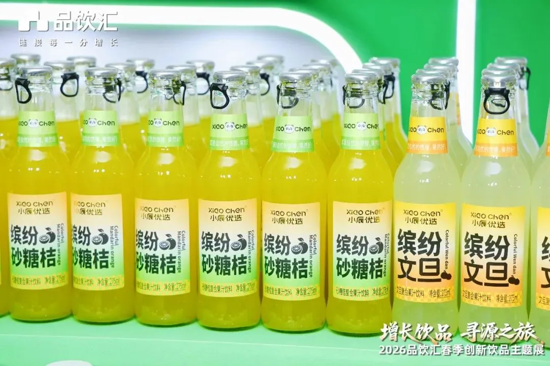 100%果汁系列:100%纯果汁含量,无菌冷灌锁鲜锁营养,白桃、葡萄等四款风味,1L大容量适配家庭、餐饮、办公等全场景,是年度囤货爆款。金银花柚子汁系列:90%高果汁含量新派养生饮,鲜爽果香融合草本清润,三重果香带独特回甘,100ml/600ml/1L多规格,匹配多渠道消费需求。缤纷系列:高颜值玻璃瓶身,拉盖即饮更便捷。